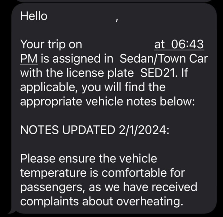 6. Based on the parameters set in your scheduled messaging, your driver will receive a text or email with the information you’ve provided.