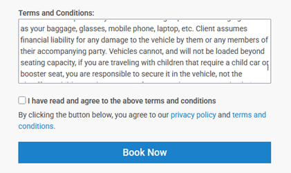 - Require Accepting TOS and Signature: Customers must sign your Terms and Conditions before completing a reservation.