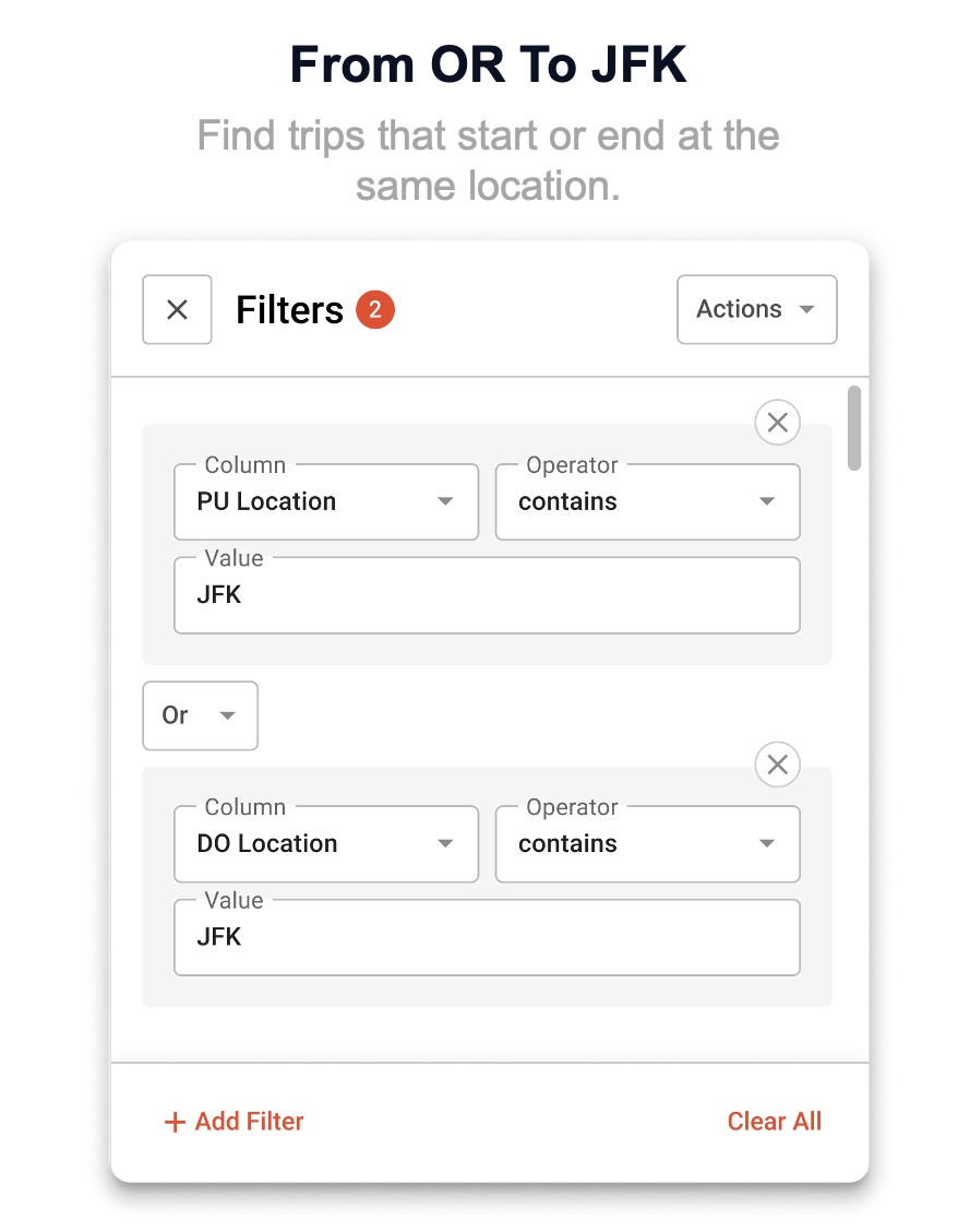 - This example shows trips going from or to JFK, helping you group nearby pickups and drop-offs for easier routing.