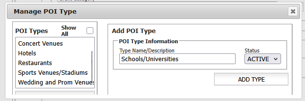 3. Choose an option from the “Parent Category” dropdown. To create a new category, click the “…” button to open the “Manage POI Type” screen.