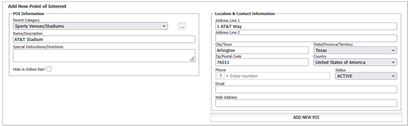 They’re especially useful when onboarding new reservationists or working with an overnight call center. With POIs in place, your team can confidently select the right location, even when they’re not as familiar with your area or when multiple venues share similar names.