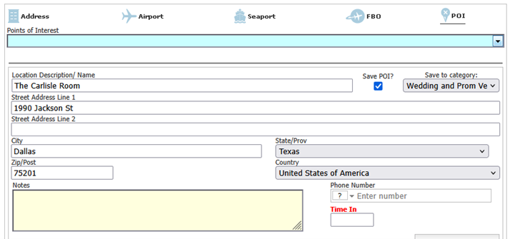 Points of Interest (POIs) simplify your reservation process by storing your most common locations directly in your system. Whether it’s a hotel, restaurant, or wedding venue, using POIs keeps details consistent and saves time on data entry.