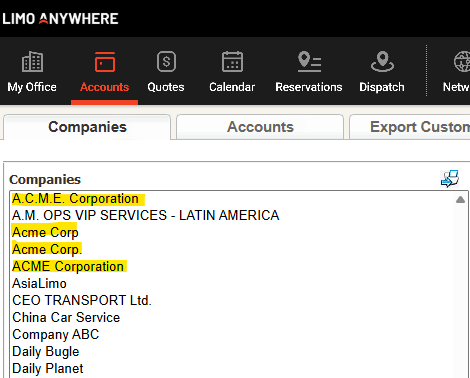 Limo Anywhere relies on clean data for accurate search results, filtering, and reporting. Even small inconsistencies in formatting can create unnecessary clutter and confusion, such as: