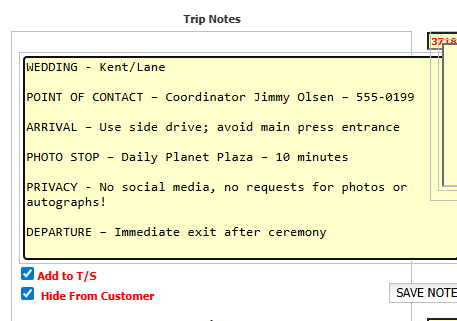 This approach makes notes easier to scan quickly in reservations, manifests, and trip sheets — especially during high-volume dispatch periods.