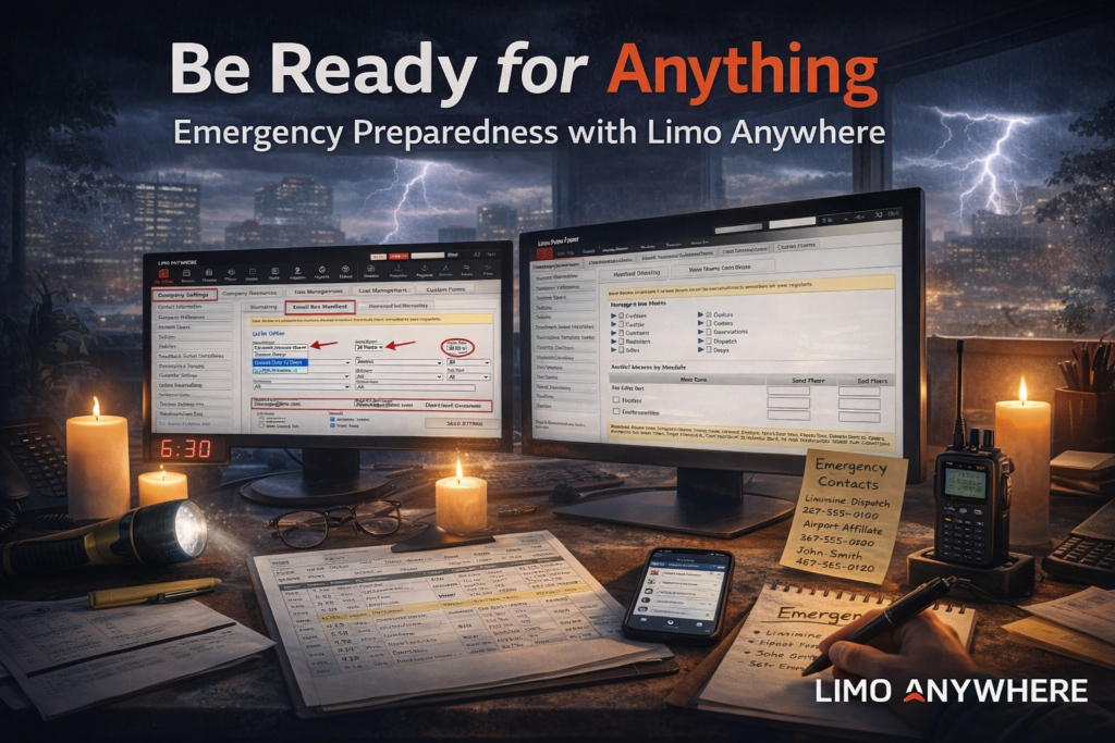 Even the best-run operations encounter occasional disruptions—whether it’s a power outage, internet downtime, or software access issue. For ground transportation companies, where timing is critical and clients expect seamless service, a sudden disruption can quickly become a crisis. Fortunately, with a little planning and some built-in tools from Limo Anywhere, you can ensure your team […]